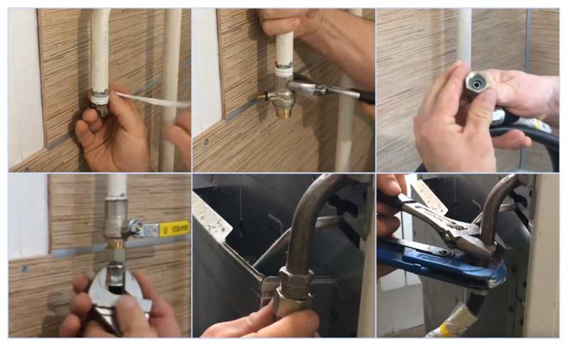 • un outil conçu pour sceller le point de fixation d'un robinet avec un tuyau (à cet effet, vous pouvez utiliser du fil de lin ordinaire, du ruban FUM, du fil Tangit Unilok);