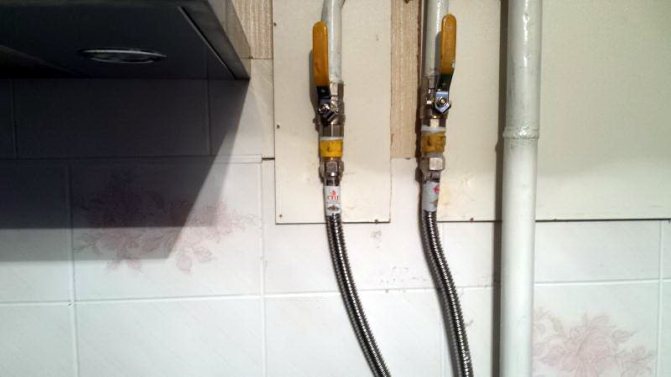 Notez que la vanne de fermeture de l'alimentation en gaz ne peut être installée que sur une section rigide du tuyau. Si la branche métallique à côté de l'appareil est endommagée, elle est transférée. Dans ce cas, un tuyau de gaz est inclus dans la conduite, ce qui est considéré comme une solution temporaire au problème.