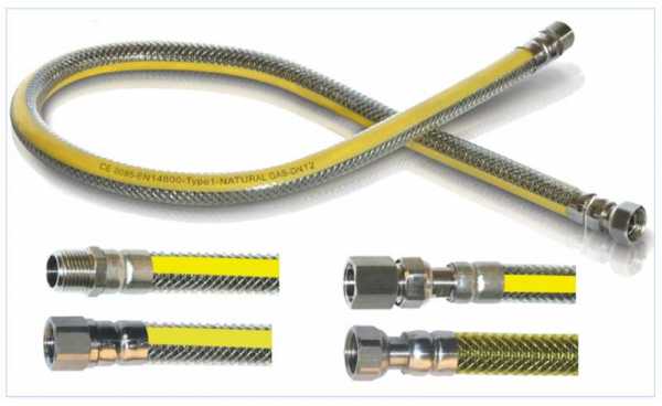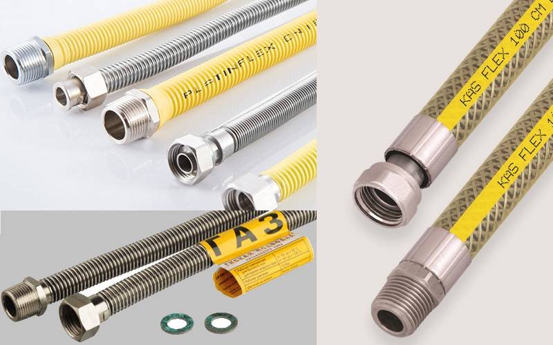 Selon la réglementation, la longueur du tube flexible ne doit pas dépasser 4 mètres. Les diamètres de raccord sont standard ½″ et ¼″, ou les moins courants ⅜″. La connexion de ce dernier se fait par le conducteur. Les deux extrémités du tuyau sont fournies avec des écrous-raccords. Moins souvent - un écrou d'un côté et un fil de l'autre.