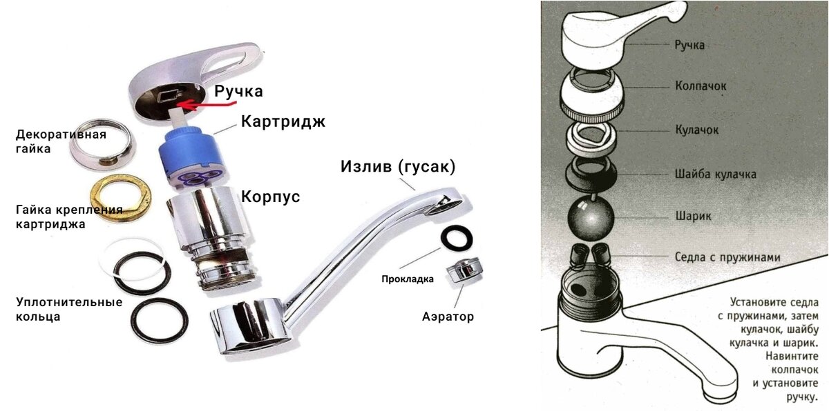 Un dispositif similaire pour les cartouches pour douches. Nous vous recommandons de vous familiariser avec la conception et les caractéristiques de leur réparation.