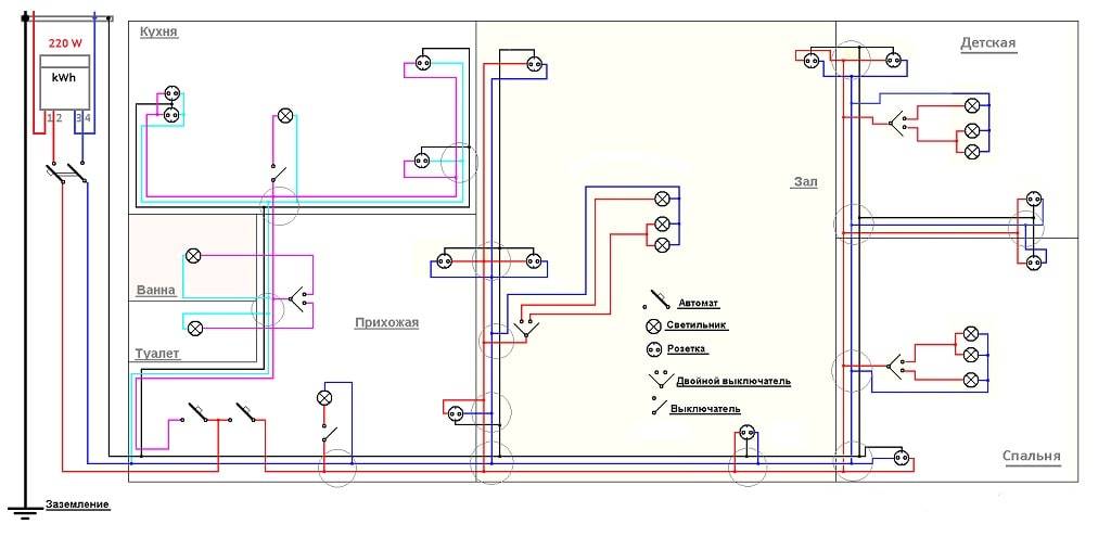 5. Installation de nouveaux câblages - installation de boîtes de jonction, pose de lignes individuelles vers de puissants consommateurs, installation de prises et d'interrupteurs, montage du blindage. Nous avons parlé de tout cela en détail lorsque nous avons décrit la technologie d'installation du câblage électrique dans un appartement. Nous ne nous répéterons pas, étudions simplement le matériel suivant :.