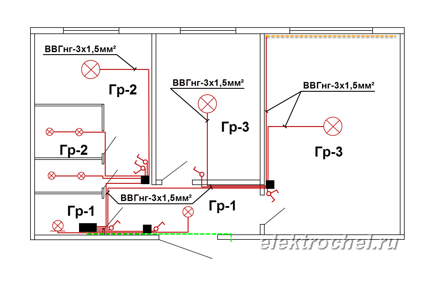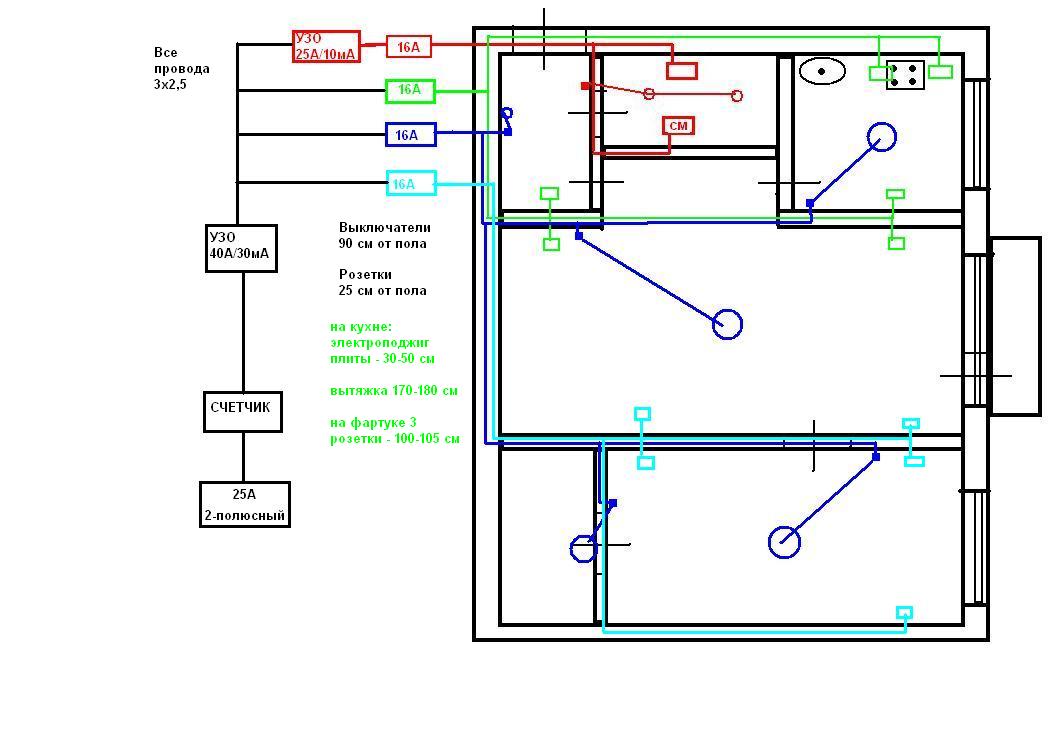 Élaborez un plan détaillé pour l'emplacement du nouveau réseau et entrez-y toutes les dimensions, par exemple, sur lesquelles hauteur du plafond ou le sol, les murs et les ouvertures de porte seront câblés. Cela vous aidera à l'avenir, car tout s'oublie très vite, et donc parfois même un simple clou enfoncé dans le mur endommagera les câbles qui y sont enfermés, ce qui entraînera non seulement des problèmes liés au remplacement de l'élément endommagé, mais peut également être nocif pour la santé. Bien sûr, le plan d'aménagement peut rester le même, mais vérifiez ensuite toutes les dimensions.
