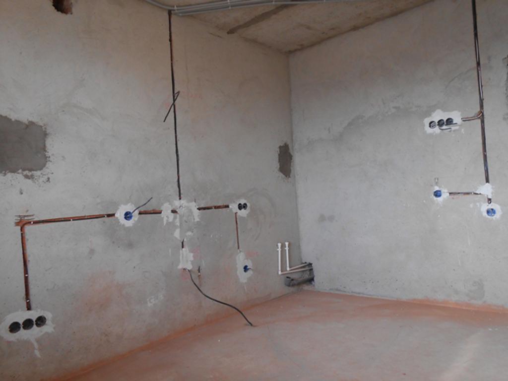 Aux sols, jusqu'au coulage des chapes des sols (en tuyaux en plastique) C'est le chemin le plus court. Ici, en passant, les stroboscopes ne seront pas utiles, car lorsque le sol sera inondé, tous les fils seront cachés. Pour un tel câblage, des prises montées dans des plinthes sont généralement nécessaires. Au fait, vous pouvez maintenant acheter des kits spéciaux - spéciaux plinthe avec passe-câbles, prises, interrupteurs, boîtes de jonction, etc. Certes, il ne convient à aucune finition.