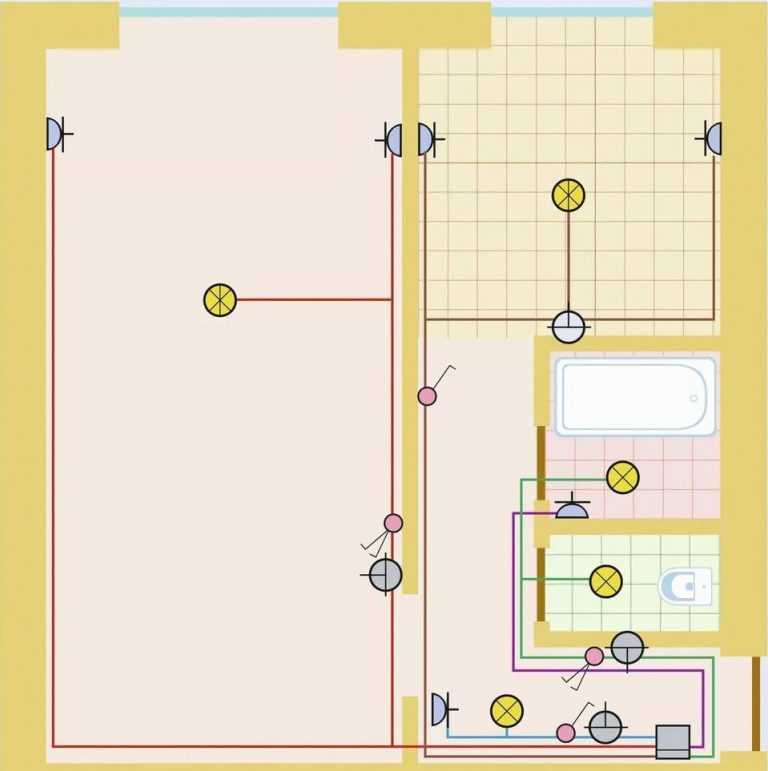Une autre pièce qui nécessite une attention particulière est la salle de bain, car elle se caractérise par une humidité élevée. Par conséquent, les prises doivent être connectées via un différentiel automatique ou RCD