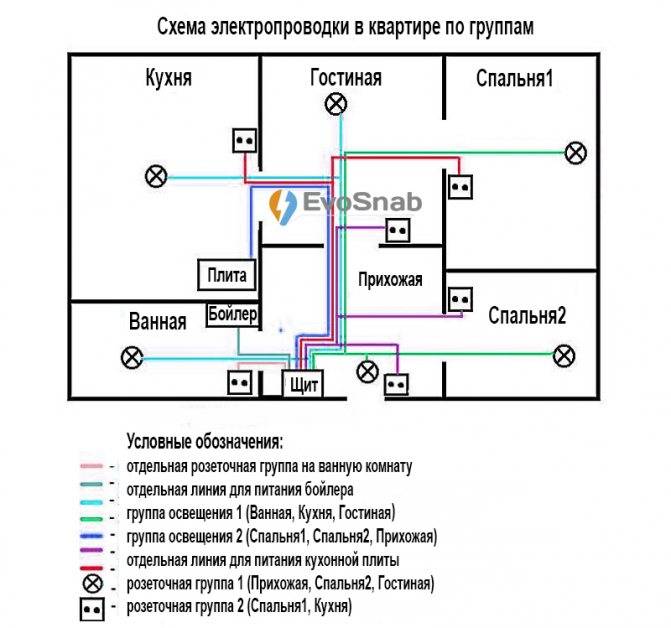Vous devez d'abord déterminer où sera la charge. Par exemple, la cuisine consomme généralement le plus d'électricité. Si nous parlons d'une pièce ordinaire, une ou deux prises par 5 mètres carrés suffisent. Compte tenu des besoins de la cuisine, quatre prises seront nécessaires pour une même pièce. N'oubliez pas non plus que pour les appareils à forte consommation d'énergie, il est nécessaire de tirer des lignes séparées du blindage.Pour certains appareils électroménagers, vous devez poser un câble en cuivre d'une section allant jusqu'à 4 à 6 carrés