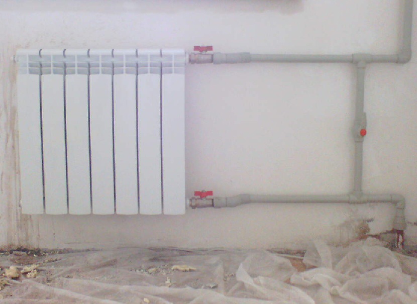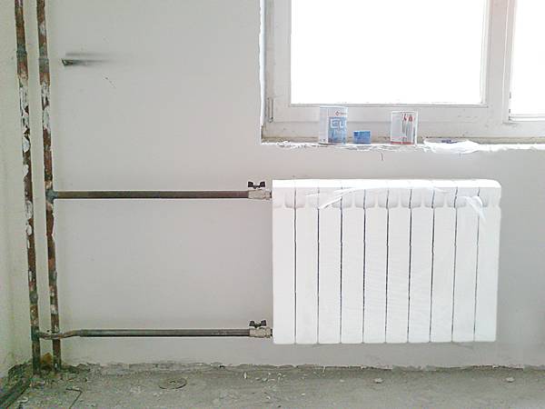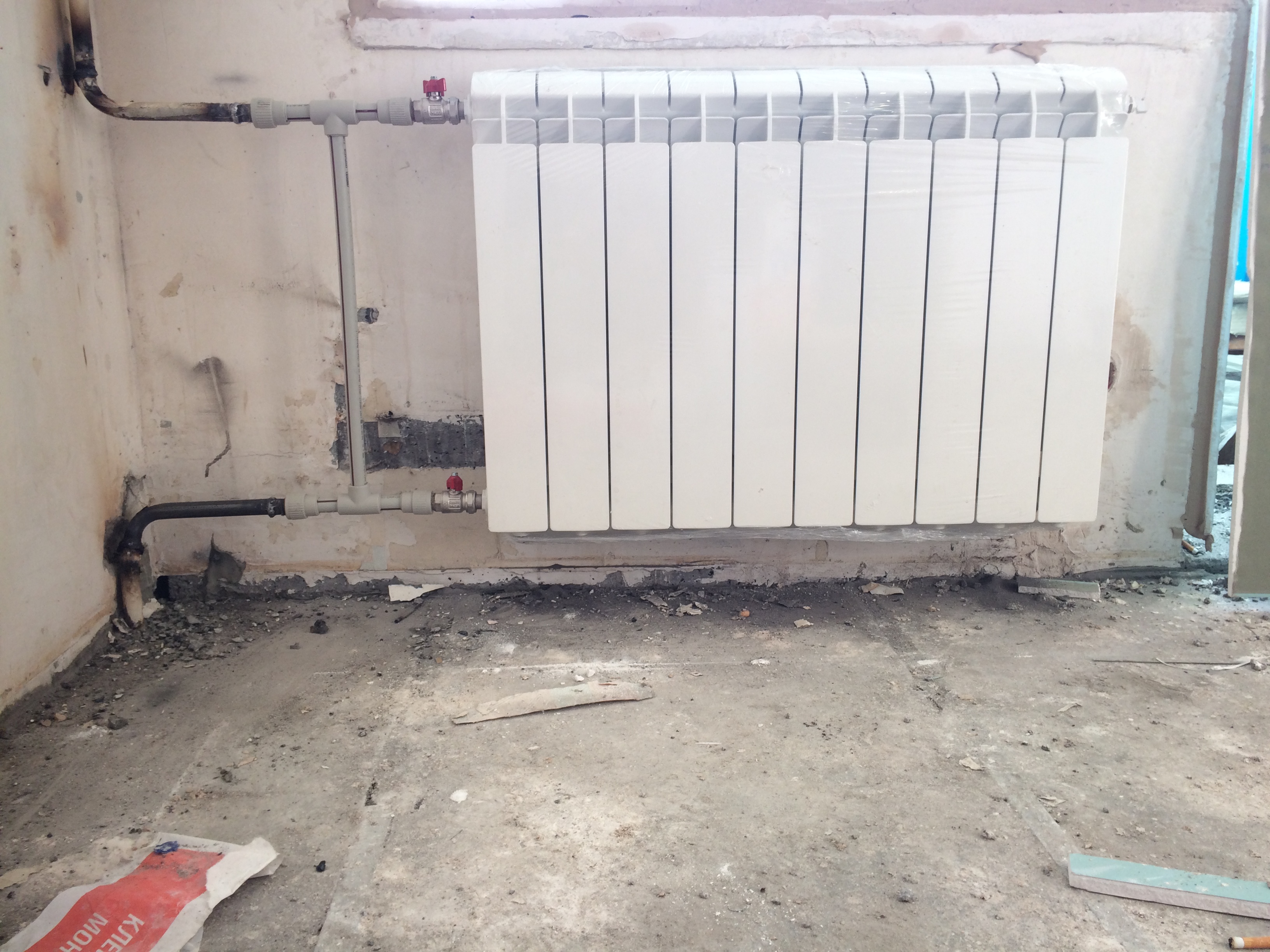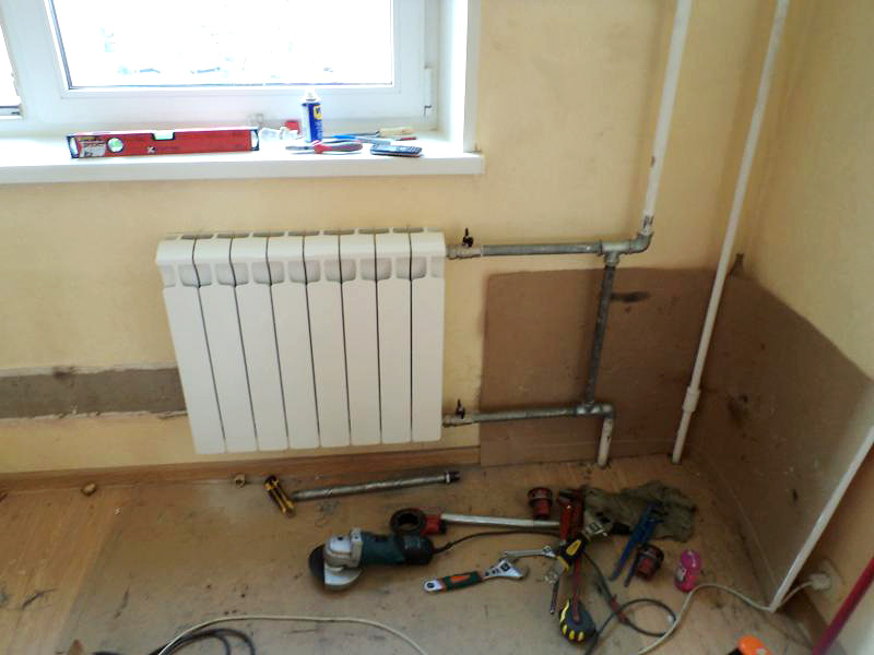 • d'abord, s'il y a de vieux radiateurs, ils doivent être démontés. Auparavant, l'eau est évacuée du système de chauffage;