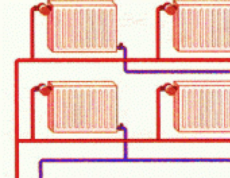 Les batteries peuvent être connectées en diagonale, latéralement ou par le bas. Il est rationnel d'installer un by-pass dans un système monotube, c'est-à-dire un tuyau qui permettra au système de fonctionner normalement lorsque les batteries sont connectées en série.