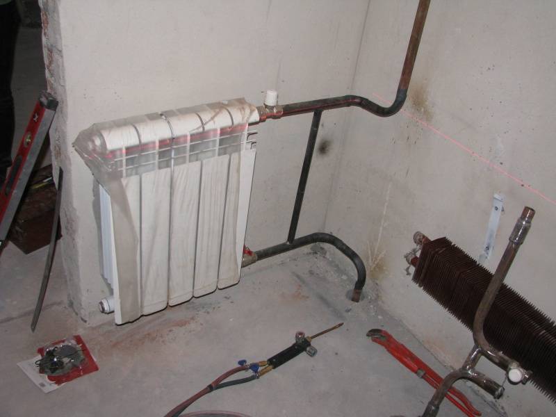 Un vrai maître de son métier installera soigneusement une nouvelle batterie comme celle-ci. Les propriétaires ne peuvent peindre que les sections de tuyaux remplacées, après quoi personne ne devinera même les travaux d'installation