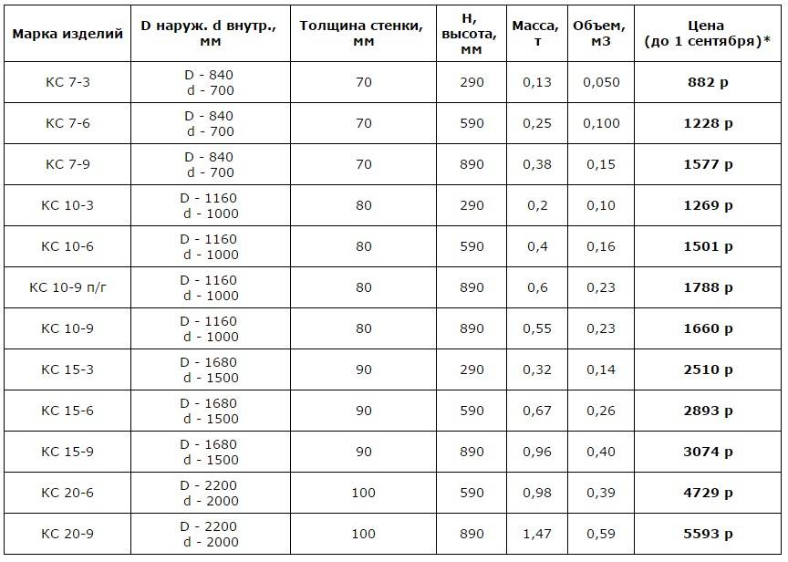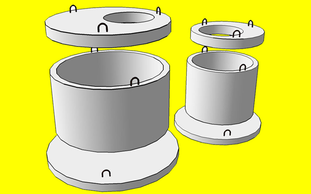 Avec une augmentation du diamètre de l'anneau et de l'épaisseur de ses parois, la consommation de béton augmente. Le poids du produit dépend également de ces dimensions. Pour réduire la masse du produit fini, ils essaient de réduire uniquement la hauteur de l'anneau en béton armé et les murs sont rendus aussi épais que possible.