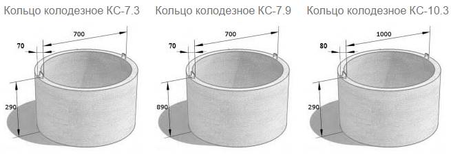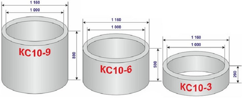 Les anneaux les plus populaires utilisés pour la construction de puits individuels sont KS10, KS15 et KS20 avec une hauteur de 90 cm.Les puits d'un diamètre inférieur à un mètre sont difficiles à creuser manuellement, et les faire dépasser de deux mètres n'est pas économiquement viable , puisque le coût des anneaux pour un puits dépend directement du nombre utilisé pour leurs matériaux de production.