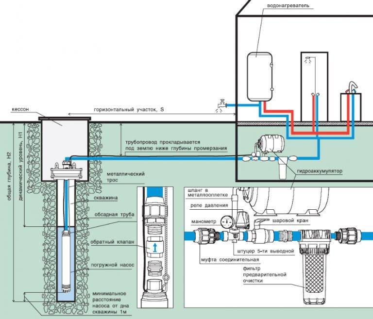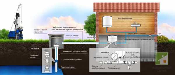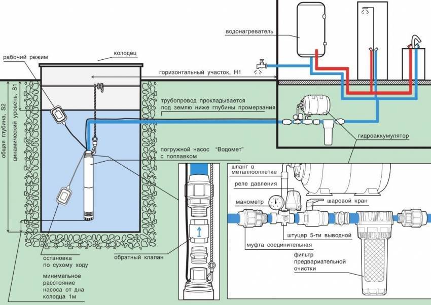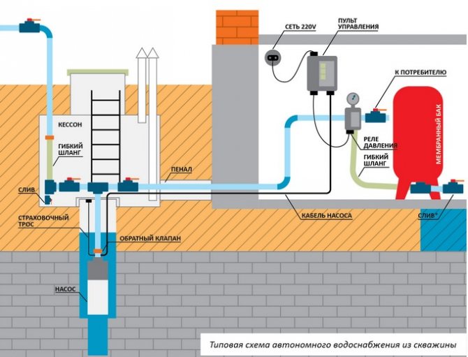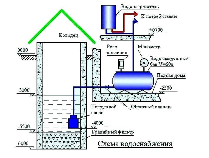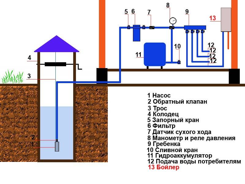 De plus, si nécessaire, le schéma d'alimentation en eau du puits à la maison comprend une branche pour le chauffe-eau. Cela permet de fournir de l'eau chaude.