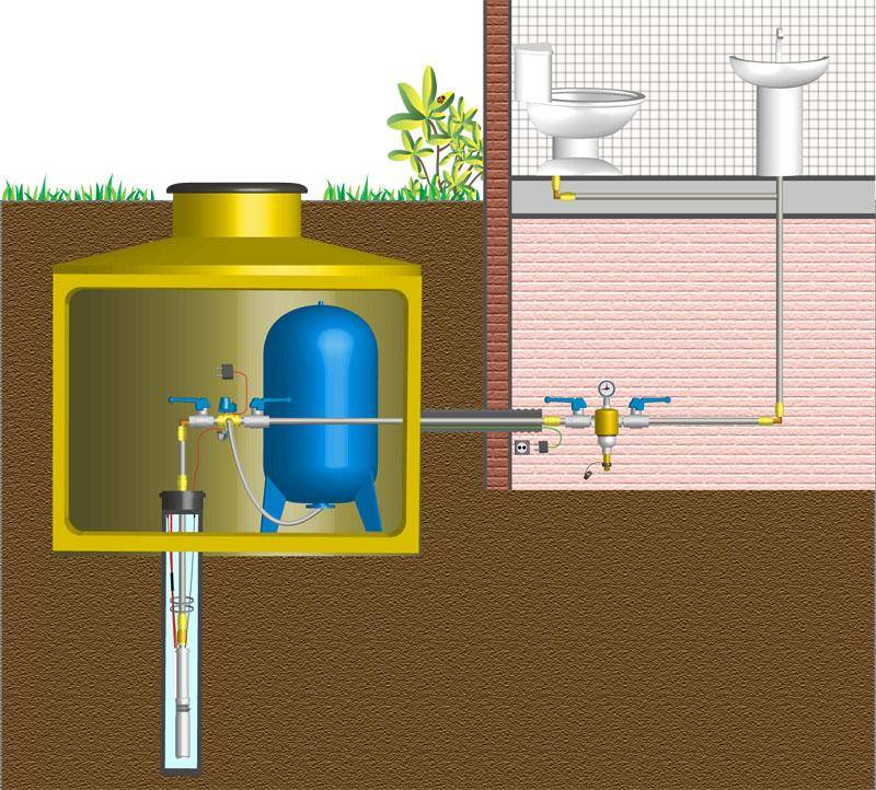 En général, l'approvisionnement en eau de pays à faire soi-même à partir d'un puits en tant que système unique devrait ressembler à ceci.
