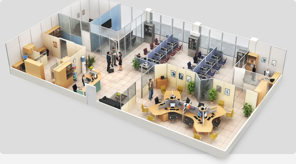 Lors de la planification de l'espace de bureau, les employés ordinaires sont de plus en plus placés dans un espace commun, plutôt que assis dans des pièces séparées. C'est bon dans tous les sens. Tout d'abord, l'espace est économisé, ainsi que l'interaction des employés est optimisée.