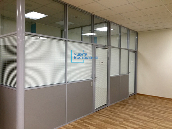 Il existe de nombreuses variétés de cloisons fixes. Ils peuvent être tout en verre, en aluminium, en simple/double vitrage ou en polycarbonate alvéolaire, en MDF, en aggloméré et autres matériaux similaires. Les modèles combinés sont également courants. Avec l'aide de cloisons en verre, vous pouvez rendre le bureau plus spacieux. Le verre permet à la lumière du soleil d'entrer librement dans n'importe quel coin de la pièce. Les cadres en aluminium avec une finition chromée impressionnante ajoutent de la sophistication au décor de bureau. De plus, des cloisons vitrées sont installées bout à bout, grâce auxquelles il est possible de créer des murs esthétiques et faciles à ériger.